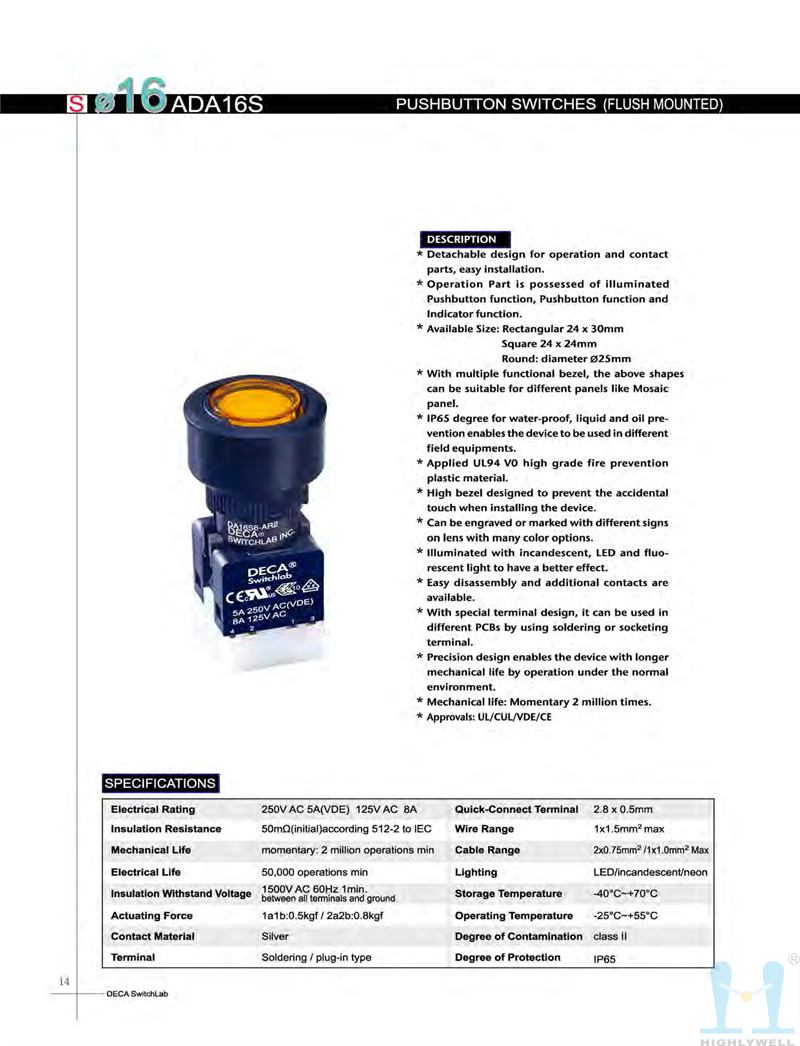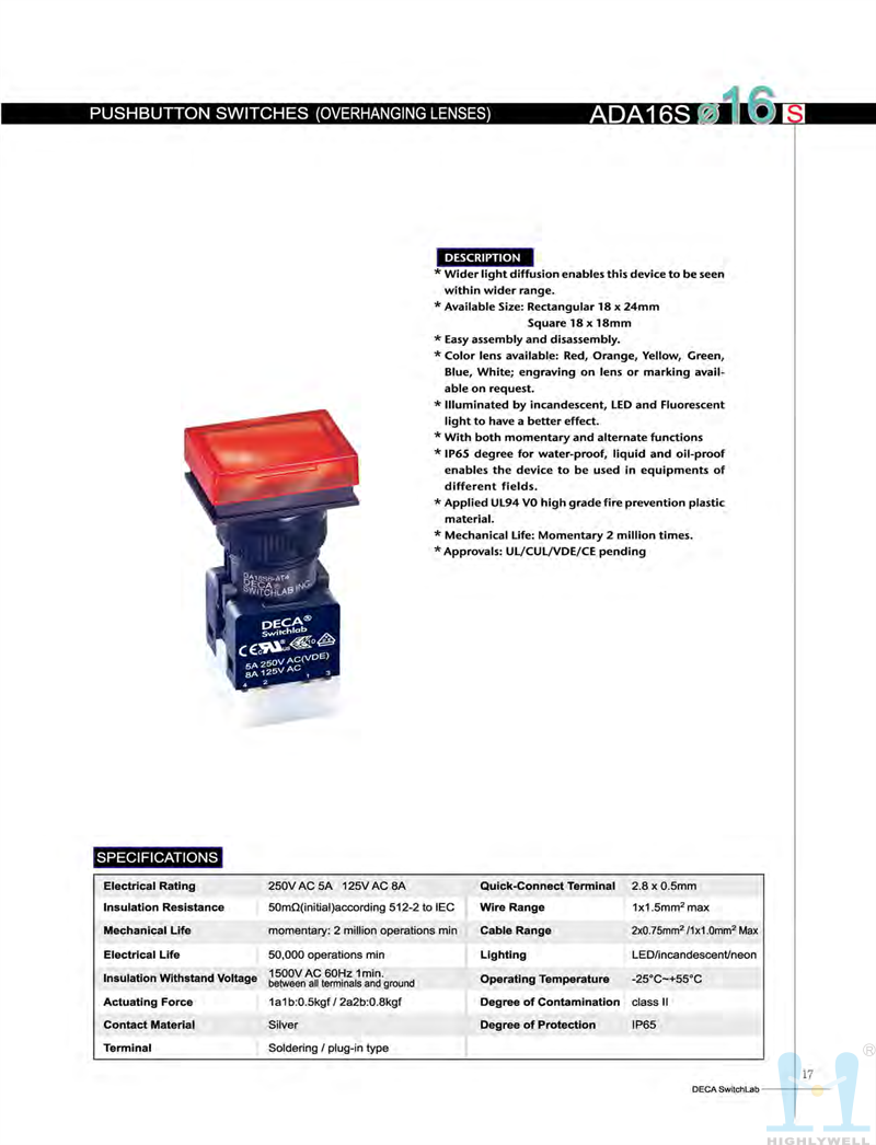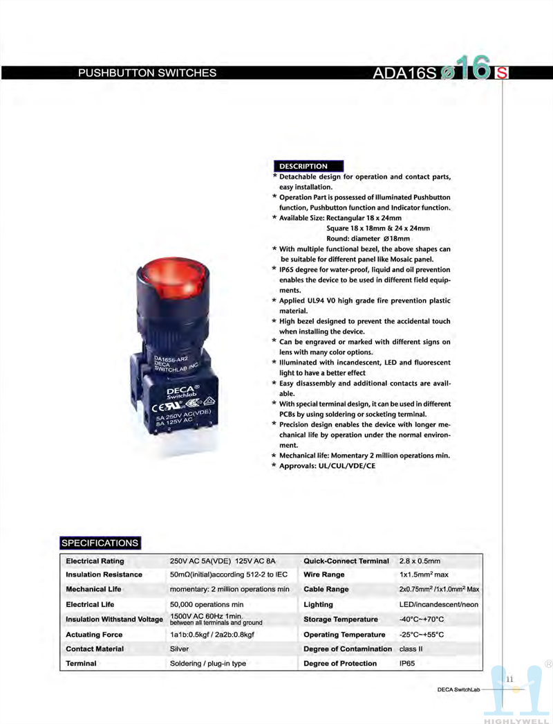 • 产品描述:进联DECA 按钮开关 ADA16S6-MR1